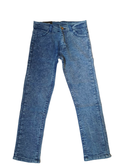 Stylish medium blue wash denim pants featuring a unique random effect. Designed for comfort and durability, perfect for everyday wear and casual outings.